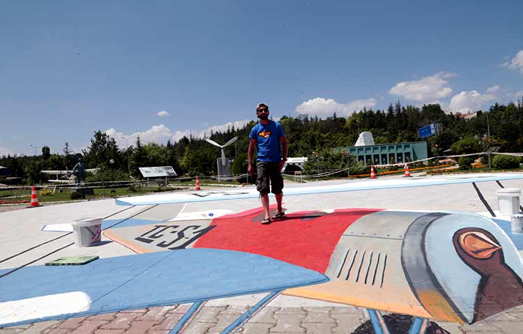 Dünyaca ünlü sokak resmi sanatçısı Alex Maksiov, Anadolu Üniversitesi (AÜ) Havacılık Parkı'na ilk Türk sivil uçağı VECİHİ XIV'ün 3 boyutlu resmini çizmeye başladı.
