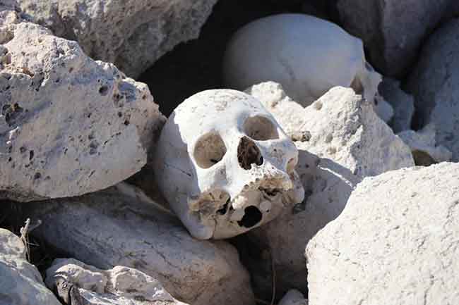 Kayseri’nin Kocasinan ilçesinde Yamula Barajı’nın sularının çekilmesiyle mezarlıklarda bulunan iskelet ve kafatasları ortaya çıktı.