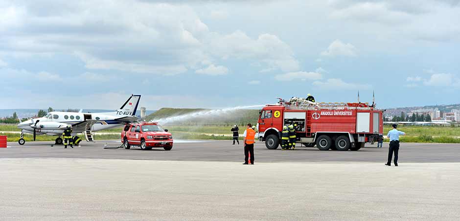 Eskişehir'de havalimanında "Uçuş emniyetsizliğinden kaynaklanabilecek uçak kazası" tatbikatı yapıldı.