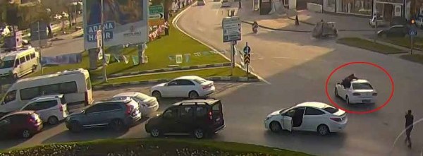 Adana'da narkotik polislerinden biri torbacılık yaptığı ileri sürülen zanlıları hareket halindeki otomobilin üst kısmına asılarak, diğeri de lastiklere ateş ederek etkisiz hale getirdi. Olay anı ise güvenlik kamerası tarafından saniye saniye görüntülendi.