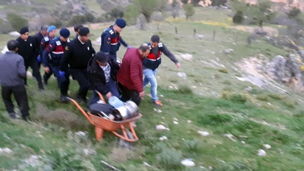 Ana yola 2 metre kala çalışır durumda olan çapa motoruyla dengesini kaybeden İsmail Orha, motoruyla birlikte yaklaşık 40 metre uçuruma yuvarlandı