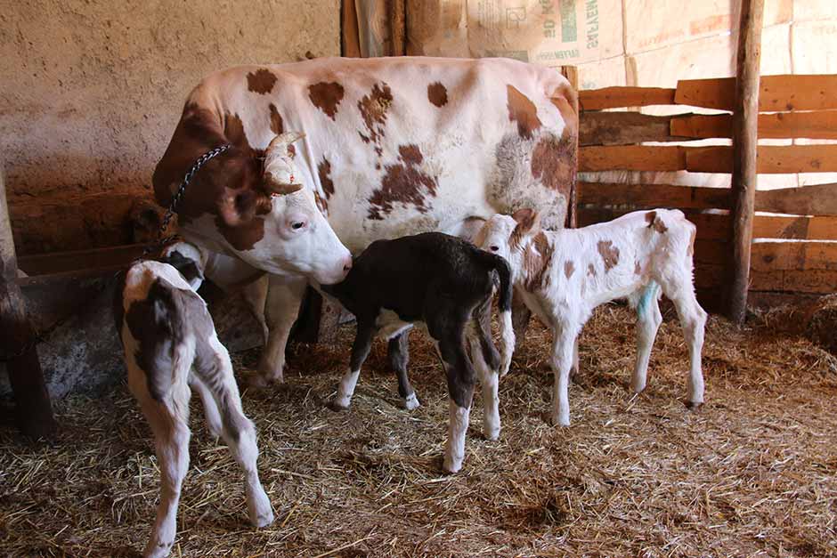 Eskişehir’in Seyitgazi İlçesi'ne bağlı Kümbet Mahallesi'nde, Simental cinsi bir inek üçüz doğurdu.