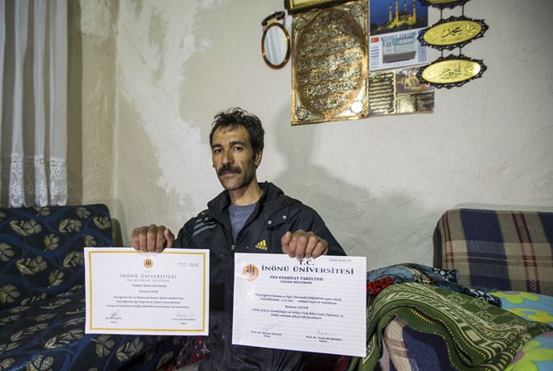 Ankara'nın Sokullu Mahallesi'nde bir gecekonduda ailesiyle birlikte yaşayan Ramazan Gezer (37), sokaklara bırakılan karton ve plastik malzemeleri toplayıp ailesinin geçimini sağlıyor. Evli ve 4 çocuk babası olan Gezer, İnönü Üniversitesi Fizik Bölümü mezunu. Gezer'in 3 yaşındaki oğlu Muhammed Haşim evlerinin önünde babasının topladığı karton kutularla oyun oynuyor.