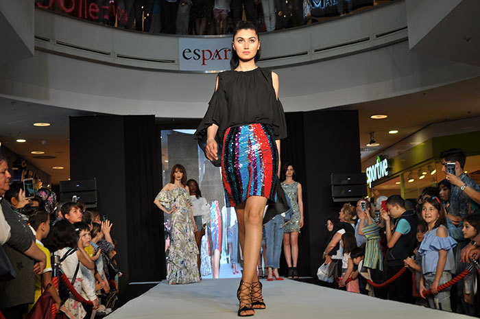 Espark Alışvaeriş Merkezinde (AVM), ilkbahar-yaz kreaksiyonlarının sergilendiği defile düzenlendi. AVM içerisine bulunan farklı mağazaların son tasarımlarının yer aldığı defilede, birbirinden ünlü mankenler podyumda yürüdü.