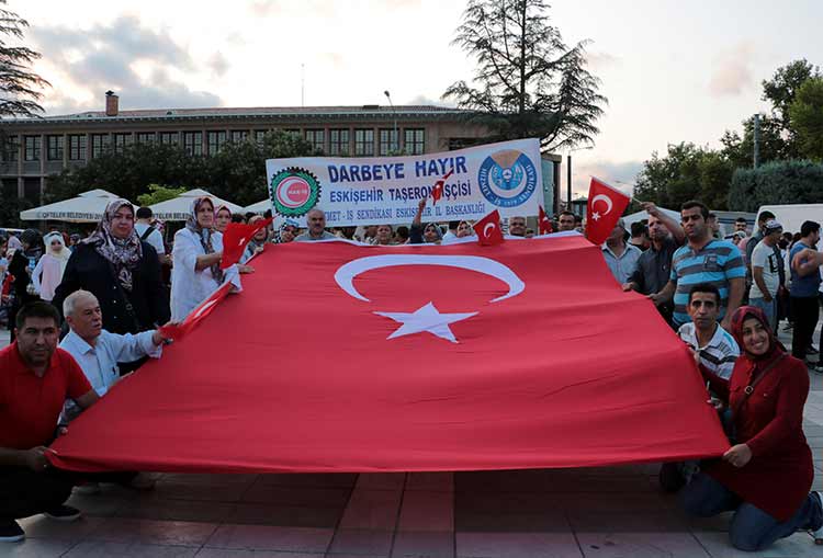 Eskişehir'de, Vilayet Meydanı'nda toplanan vatandaşlar, Fetullahçı Terör Örgütü'nün (FETÖ) darbe girişimine tepki gösterdi.