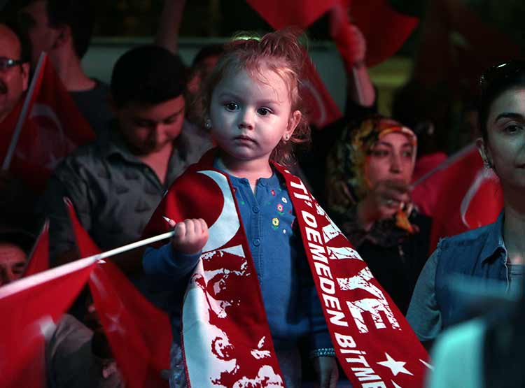 Eskişehir'de, Vilayet Meydanı'nda toplanan vatandaşlar, Fetullahçı Terör Örgütü'nün (FETÖ) darbe girişimine tepki gösterdi.