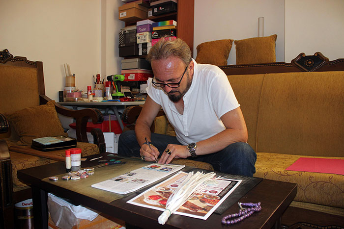 Eskişehir’de patentini aldığı teknikle atık kağıtlardan değişik tespih, kolye, yüzük gibi süs eşyaları yapan Ali Rıza kart, çocuklarına bırakacağı vasiyetini tespihe yazdı.