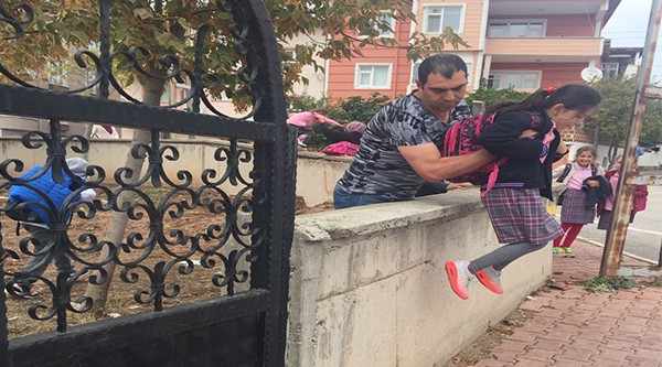 Bilecik’te, 2016-2017 eğitim-öğretim yılının açılmasıyla 700. Yıl İlköğretim okulun 2’inci giriş kapısının kitlenmesine tepki gösteren veliler, eski alışkanlıklarından da vazgeçmeyerek çocuklarıyla tehlikeye davetiye çıkartıyorlar.