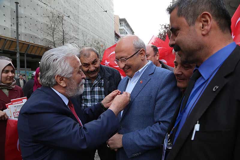 Eskişehir'de, halk oylamasına yönelik kampanyalarını aynı caddede beş metre arayla kurdukları çadırda yürüten farklı görüşteki siyasi partilerin milletvekilleri, vatandaşlara anayasa değişikliğine ilişkin görüşlerini aktarıyor.