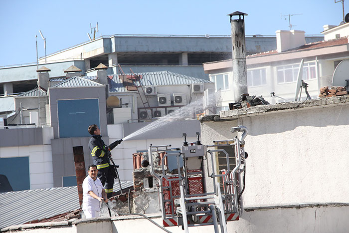 Eskişehir'de bir işletmede çıkan yangında işletme sahibi olduğu ileri sürülen kadın fenalık geçirdi.