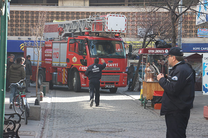 Eskişehir'de bir işletmede çıkan yangında işletme sahibi olduğu ileri sürülen kadın fenalık geçirdi.