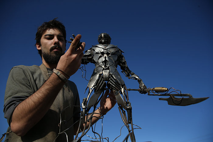 Metal at heykeli başta olmak üzere hurda malzemelerle yaptığı heykelleriyle adını duyuran Anadolu Üniversitesi (AÜ) Güzel Sanatlar Fakültesi Heykel Bölümü 3. sınıf öğrencisi Cem Özkan, hem iki eserini İstanbul Lütfi Kırdar Uluslararası Kongre ve Sergi Sarayı'nda sergilemekten hem de bazı sanayi tesislerinin hurdalıklarını kendisine ücretsiz açmasından mutluluk duyuyor.