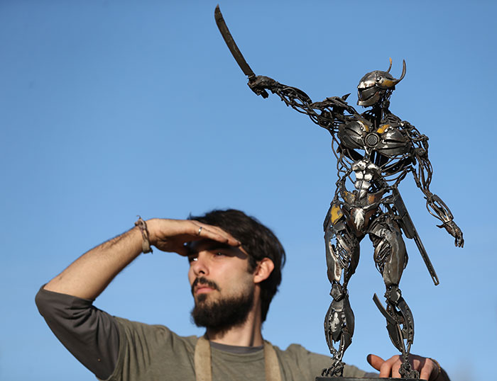 Metal at heykeli başta olmak üzere hurda malzemelerle yaptığı heykelleriyle adını duyuran Anadolu Üniversitesi (AÜ) Güzel Sanatlar Fakültesi Heykel Bölümü 3. sınıf öğrencisi Cem Özkan, hem iki eserini İstanbul Lütfi Kırdar Uluslararası Kongre ve Sergi Sarayı'nda sergilemekten hem de bazı sanayi tesislerinin hurdalıklarını kendisine ücretsiz açmasından mutluluk duyuyor.