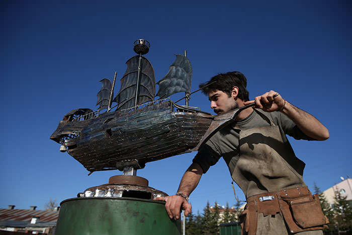 Metal at heykeli başta olmak üzere hurda malzemelerle yaptığı heykelleriyle adını duyuran Anadolu Üniversitesi (AÜ) Güzel Sanatlar Fakültesi Heykel Bölümü 3. sınıf öğrencisi Cem Özkan, hem iki eserini İstanbul Lütfi Kırdar Uluslararası Kongre ve Sergi Sarayı'nda sergilemekten hem de bazı sanayi tesislerinin hurdalıklarını kendisine ücretsiz açmasından mutluluk duyuyor.