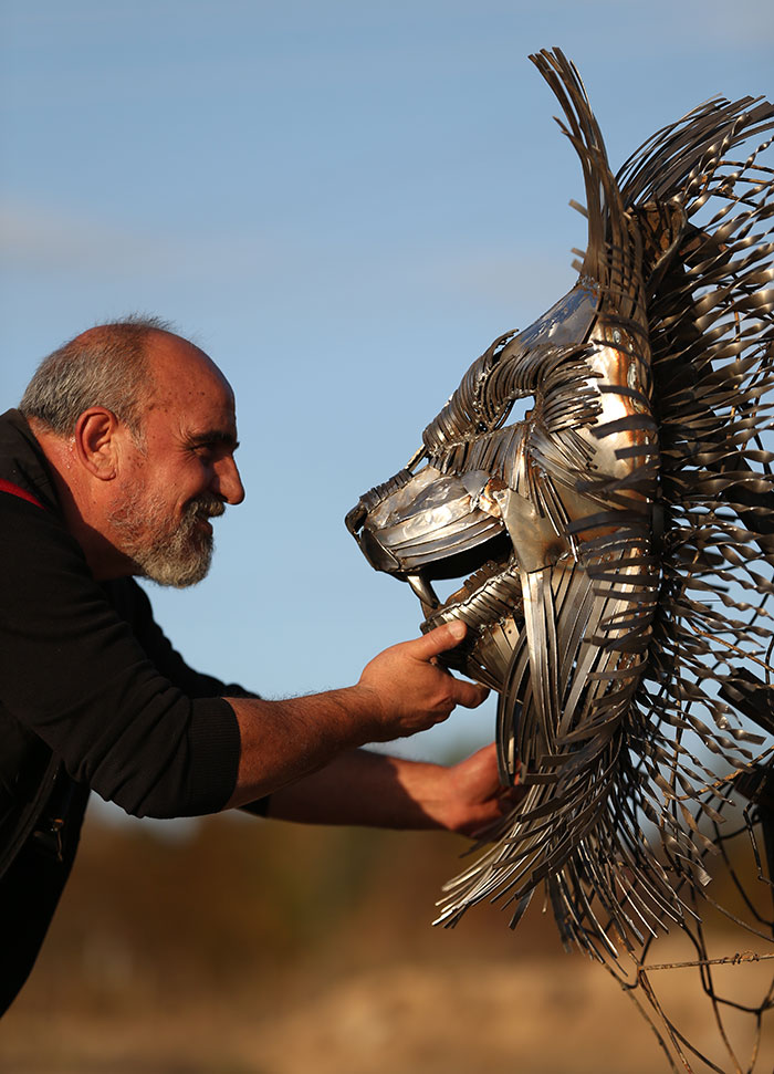 Metal at heykeli başta olmak üzere hurda malzemelerle yaptığı heykelleriyle adını duyuran Anadolu Üniversitesi (AÜ) Güzel Sanatlar Fakültesi Heykel Bölümü 3. sınıf öğrencisi Cem Özkan, hem iki eserini İstanbul Lütfi Kırdar Uluslararası Kongre ve Sergi Sarayı'nda sergilemekten hem de bazı sanayi tesislerinin hurdalıklarını kendisine ücretsiz açmasından mutluluk duyuyor.