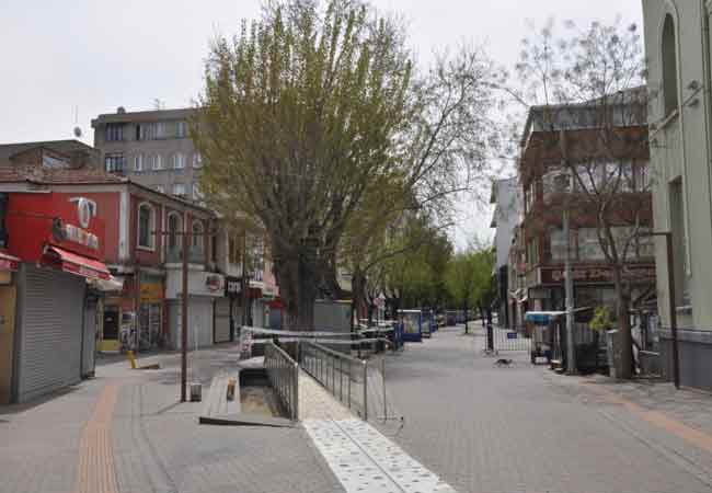 Eskişehir'de koronavirüs ile mücadele kapsamında sokağa çıkma kısıtlamasının ikinci gününde cadde ve sokaklar boş kaldı.