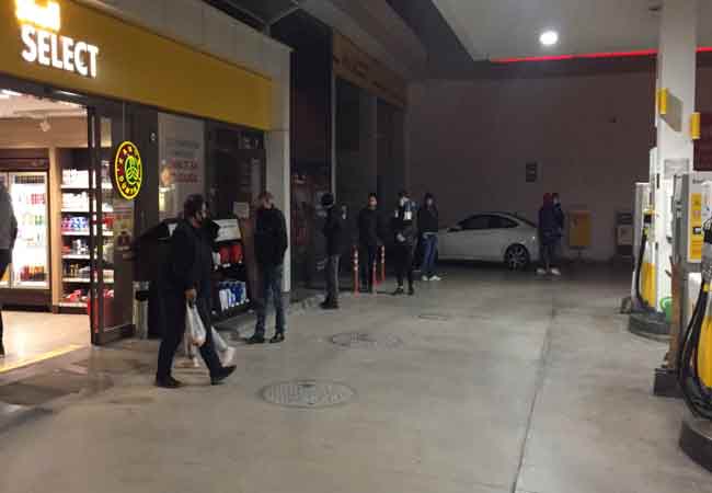 Araçla veya yürüyerek marketlere gelen insanlar, yine metrelerce kuyruk oluşturdu.