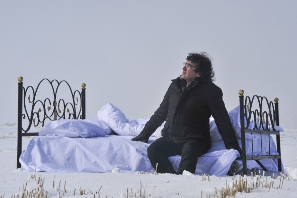 Türk profesör karla kaplı araziye yatak yorgan getirip yattı
