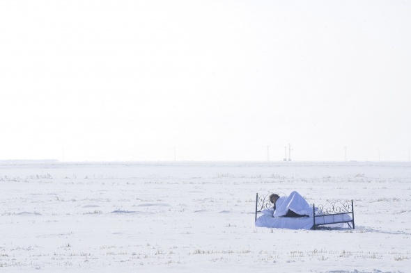 Türk profesör karla kaplı araziye yatak yorgan getirip yattı