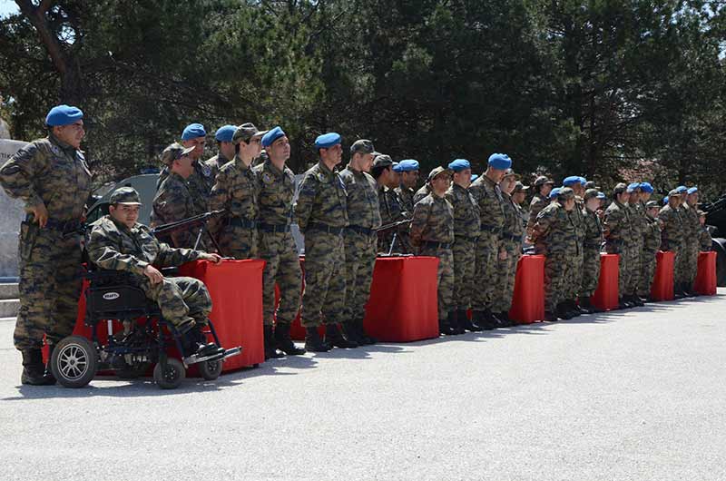Eskişehir 1. Ana Jet Üs Komutanlığına gelen engelli vatandaşlar, yeminlerini ederek bir günlük askerlik yaptılar.