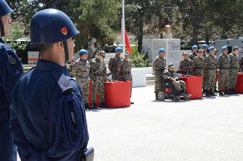 Eskişehir 1. Ana Jet Üs Komutanlığına gelen engelli vatandaşlar, yeminlerini ederek bir günlük askerlik yaptılar.