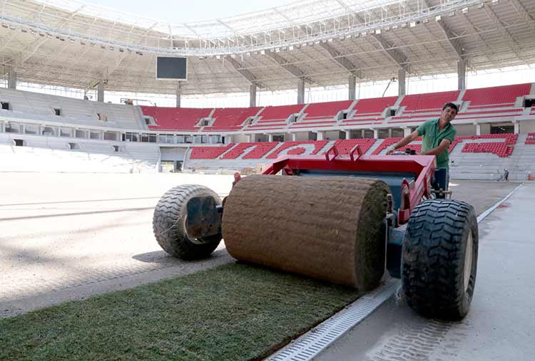 Eskişehir'de inşası tamamlanmak üzere olan 35 bin kişilik yeni stadın çim serme işlemine başlandı.