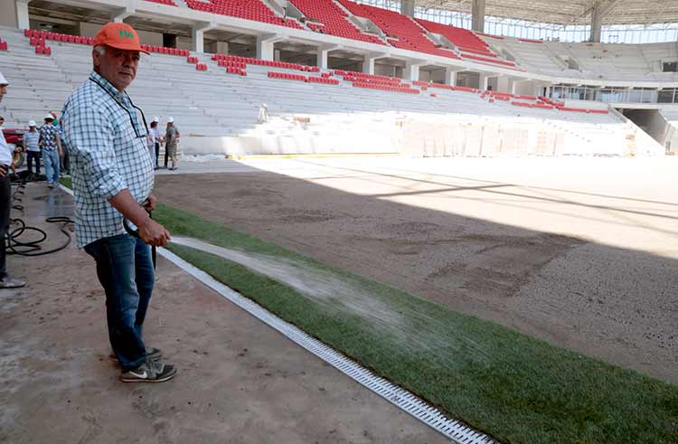 Eskişehir'de inşası tamamlanmak üzere olan 35 bin kişilik yeni stadın çim serme işlemine başlandı.