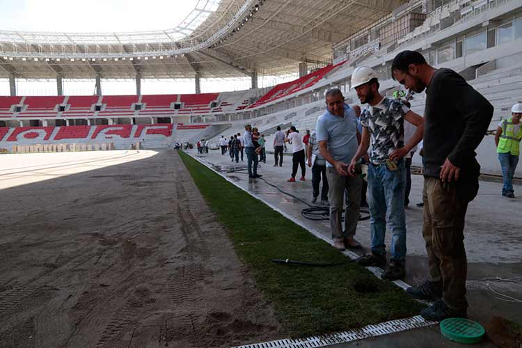 Eskişehir'de inşası tamamlanmak üzere olan 35 bin kişilik yeni stadın çim serme işlemine başlandı.