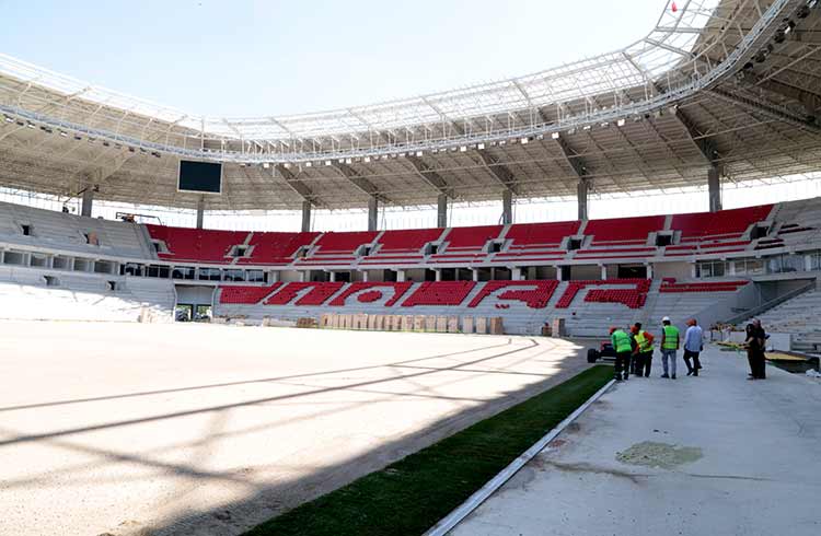 Eskişehir'de inşası tamamlanmak üzere olan 35 bin kişilik yeni stadın çim serme işlemine başlandı.