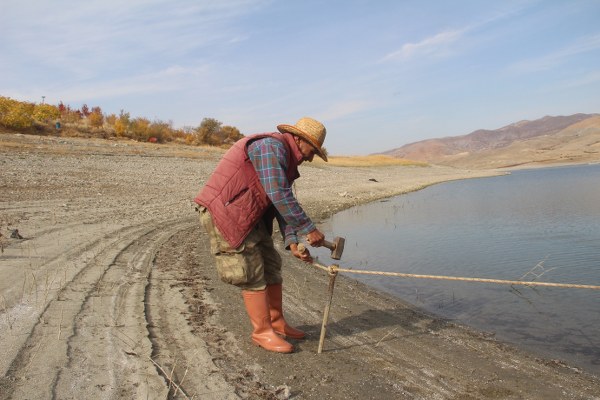 Eskişehir'den ayrılarak 14 yıl önce yerleştiği adaya diktiği 3 bin 500 fidan ile renk veren 80 yaşındaki Ziya Abay, bin 700 TL'lik emekli maaşı ile almayı düşündüğü fidanlar için yer hazırlıyor
