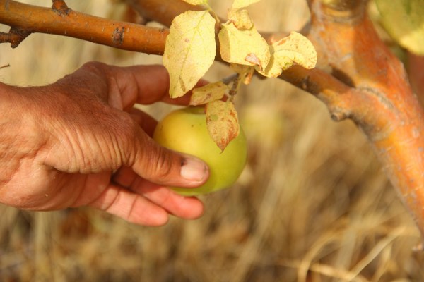 Eskişehir'den ayrılarak 14 yıl önce yerleştiği adaya diktiği 3 bin 500 fidan ile renk veren 80 yaşındaki Ziya Abay, bin 700 TL'lik emekli maaşı ile almayı düşündüğü fidanlar için yer hazırlıyor