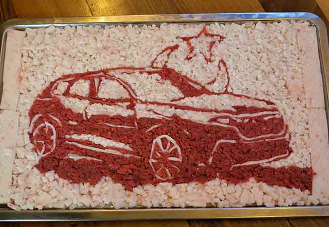 Eskişehir'de kasaplık yapan Ali Özyörük, dana eti ve kuyruk yağı kullanarak yerli otomobilin resmini çizdi.