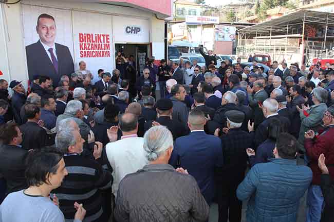 CHP Sarıcakaya Belediye Başkanı Adayı Şafak Atay’ın Seçim İletişim Merkezi açılışı için Sarıcakaya’ya giden Başkan Büyükerşen, büyük ilgi ile karşılandı.