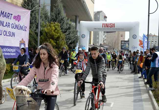 Eskişehir Büyükşehir Belediyesi 8 Mart Dünya Emekçi Kadınlar Günü kapsamında düzenlediği etkinliklerden biri olan Bisiklet Turu’nda kadın, erkek, genç, yaşlı yüzlerce Eskişehirli, kadınların mücadelesini desteklemek amacıyla bisiklet turunda bir araya geldi.