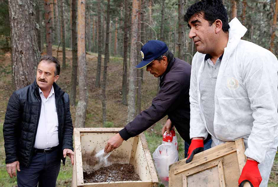 Eskişehir'deki ormanlarda yüksek rakımlarda yaşayan "kırmızı karıncalar", orman zararlısı böceklerle mücadele ve geniş alanlara yayılması amacıyla daha düşük rakımlara taşınıyor.