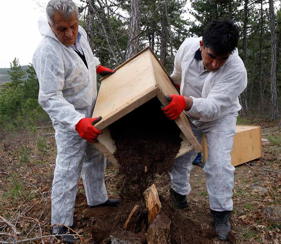 Eskişehir'deki ormanlarda yüksek rakımlarda yaşayan "kırmızı karıncalar", orman zararlısı böceklerle mücadele ve geniş alanlara yayılması amacıyla daha düşük rakımlara taşınıyor.