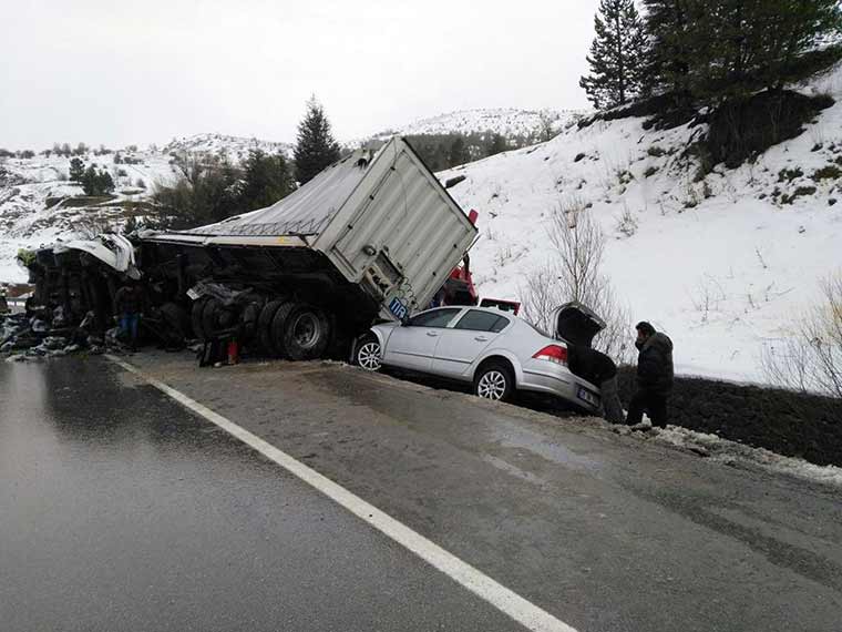 Afyonkarahisar’da TIR, otobüs ve otomobillerin karıştığı zincirleme trafik kazasında 18 kişi yaralandı.
