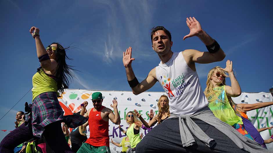 İzmirli kadınlar, Dünya Hareket Gününde; ‘Dengeli Beslen Harekete Geç’ projesi kapsamında, dans ve fitnesi birleştiren Zumba ile obeziteye karşı harekete geçti.