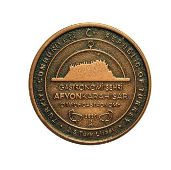 Unesco’Nun Gastronomi Alanına Dahil Edilen Afyonkarahisar’In Hatıra Paraları Darphane Tarafından Basıldı. Paralar Gümüş, Bronz Ve Altın Olarak Basıldı. Gümüş Paranın Değeri 100 Lira, Bronz Paranın Değeri 275 Lira, Altın Paranın Değeri İse 300 Lira Üzerinden Satışa Çıktı.
