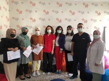 Gebe Okulu programı ile, 2021 Yılı 1. dönem Gebe Okulu mezunu anne adaylarına Hastane Başhekimi Op. Dr. İlhan Zencirci, Sağlık Bakım Hizmetleri Müdürü Yasemin Eren, Kadın Doğum Hastalıkları Uzmanı Dr. Elif Ilgazi ve Gebe Okulu Sorumlusu Ebe Fatma Yılmaz tarafından katılım belgeleri verildi.
