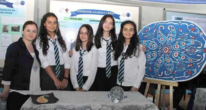 “Zımparada hayat bulan çini” ismini verdikleri eserleri hakkında bilgi veren Eskişehir Anadolu Lisesi 9’uncu sınıf öğrencisi Bera Özdamar, daha önce hiç yapmadıkları çini sanatını bu uğraşlarıyla öğrendiklerini belirtti. Yapılan motifleri kısa sürede öğrendiklerini aktaran Özdamar, “Biz geçmişteki kültümüzü günümüze yansıtmak ve yeniden canlandırmak istedik. Zaten bu kültür aslında toprağın pişirilmiş hali. Ona şekil veriliyor ve yapılıyor. Biz de dedik ki ‘Bunu başka bir türlü yapalım’. Hani günümüzdeki malzemelerden yararlanalım istedik. Bunda da zımpara kullandık. Pürüzlü bir yüzü var, yapılması zor. Bizi biraz uğraştırsın istedik. Daha sonra bunu pastel boyayla yaptık. Zımparayı biraz farklı karşıladılar. Zımparaya yapmak gerçekten çok zor. Biz çizerken beyaz kuru boya kullandık çizerken. Bir gün çiziyoruz, ama ertesi sabah geldiğimizde kayboluyor. Bu yüzden bize ‘Uğraşmayın, A4 kağıtlarına yapmayı deneyin’ dediler. Ama biz devam edip farklı bir şey ortaya çıkarmak istedik ve bunu yapmaya devam ettik” dedi.