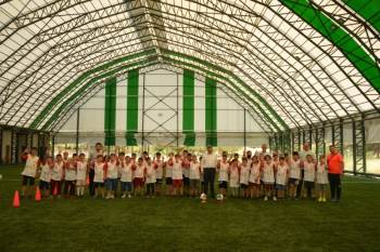 Başkan Akçadurak, Yaz Futbol Okulu’na katılan öğrencilerle ve eğitmenlerle hatıra fotoğrafı çektirdi.