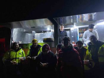 5 kişilik ekip tarafından deprem bölgesinde farklı noktalarda tarhana çorbası dağıtan Gedizliler bir nebze de olsa depremzedelerin içini ısıtmaya çalışıyorlar.