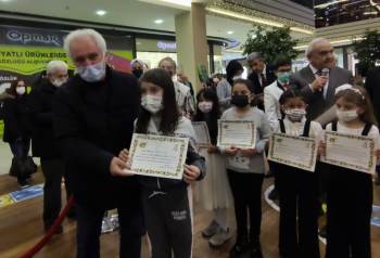 Geleceğin ressamlarının sertifikaları, sergiye katılan protokol mensuplarınca takdim edildi.