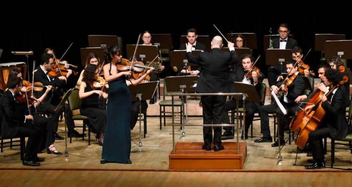 Orkestra şefliğini Murat Göktaş’ın üstlendiği konserin solistliğinde Ezgi Kapaklıkaya (Piyano), Melis Şahin (Flüt), Bengi Bahar Işkıncı (Viyola), Nisa Duru Tarkan (Viyolonsel), Deniz Ulu (Trombon), Eren Birinci (Marimba) yer aldı. Konserde L. Van Beethoven, G. J. Vogler, G. Tartini, C. Stamitz gibi bestecilerin eserleri dinleyicilere keyifli dakikalar yaşattı.