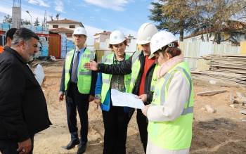 Genel Sekreter Bayrakçı, Plan Proje Yatırım ve İnşaat Müdürlüğü ve teknik personelleriyle İl Özel İdaresi tarafından ihale edilerek yapımına başlanan, kontrollük hizmetlerini yürüttülmeye devam eden eğitim ve sağlık yatırımlarını yerinde inceledi. İnceleme esnasında 1’inci kat kolon perde imalatlarının devam ettiği Ertuğrulgazi Mahallesi Merkez 24 Derslikli İlkokulunda yürütülen çalışmalar hakkında bilgi alındı.