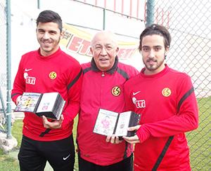 45 yıllık Es Es Taraftarı Atila Gezmen Milli takımdan dönen genç futbolcular Aytaç Kara ve Tarık Çamdal’a jest yaparak onları mutlu etti.