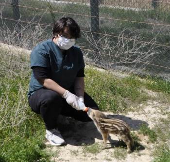 Afyonkarahisar’da anneleri doğum yaptığı esnada köpek saldırısı sonucu ölen iki yaban domuzu yavrusu tedavi altına alınırken, yavrulardan biri anneleri ile aynı kaderi paylaşıp öldü, diğeri ise biberon ile beslenmeye başladı.
