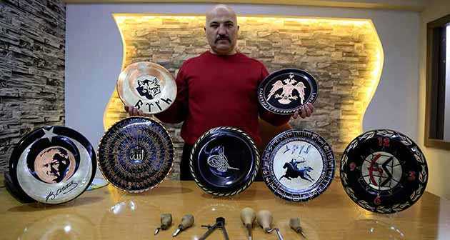 "Benimki de tarihe olan merakımdan kaynaklandı ve onu bu sanata dökmeyi tercih ettim. Geleneksel sanatların bize verdiklerinin dışında kendi içimden gelenler ile tabakları süslüyorum. Bunu meslek olarak değil hobi olarak yapıyorum. Yaptıklarımı genelde hediye ediyorum. Çelik kalemler sayesinde el işçiliğiyle yapıyorum. Hem Göktürkçeyi hem de bakır taramayı yaşatmaya çalışıyorum."