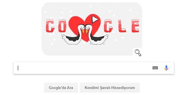 Dünyaca ünlü 14 Şubat Sevgililer Günü Google'da Doodle oldu. İnternet kullanıcıları Google'ın bu güzel sürpriziyle karşılaştı.